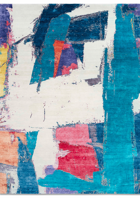 Il nostro tappeto d’arte contemporanea moderna è realizzato a mano nel Rajasthan, India, con tessitura persiana annodata a mano in qualità 9/9, in un pregiato mix di lana e seta. La superficie presenta una splendida finitura vellutata sabbiata.